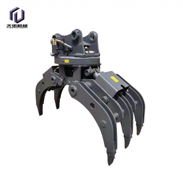 鏟斗夾:又名拇指夾,抓取重量約2.5噸,在小型木材、棒狀物、條狀物的抓取上面有優(yōu)勢(shì),適用于市政建設(shè)、二次拆除、礦山等大多數(shù)作業(yè)環(huán)境要求,適合8-50噸挖掘機(jī)使用;